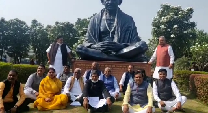 सक्ती- छत्तीसगढ़ प्रदेश भारतीय जनता पार्टी के विधायकों ने 14 दिसंबर को विधानसभा सत्र के दौरान प्रदेश सरकार द्वारा राज्य में आम जनता से प्रधानमंत्री आवास छीने जाने की बात को लेकर महात्मा गांधी की प्रतिमा के आगे धरने पर बैठ गए हैं, तथा इस धरने के दौरान भाजपा के विधायक राज्य सरकार के खिलाफ जमकर नारेबाजी करते हुए प्रधानमंत्री आवास छीने जाने को दुर्भाग्यपूर्ण बताते हुए आम जनता को उसका हक देने की बात कह रहे हैं,तथा भाजपा के सभी विधायक इस धरने में मौजूद हैं, तथा भाजपा विधायकों का कहना है कि छत्तीसगढ़ की कांग्रेस सरकार ने राज्य में प्रधानमंत्री आवास के लिए जितने लोगों का चयन हुआ था उनमे से बहुत से लोगो को आवास नहीं दिया, एवं लोगों का हक इस सरकार ने छीना है, तथा इस सरकार को लोगों को आवास उपलब्ध करवाना होगा, उल्लेखित हो कि छत्तीसगढ़ प्रदेश में प्रधानमंत्री आवास को लेकर विगत एक लंबे समय से राजनीति जोरों से चल रही है, भाजपा का कहना है कि राज्य की सरकार प्रधानमंत्री आवास योजना का सफल संचालन नहीं कर पा रही है, तो वहीं कांग्रेस की सरकार इसका ठीकरा केंद्र पर फोड़ती है