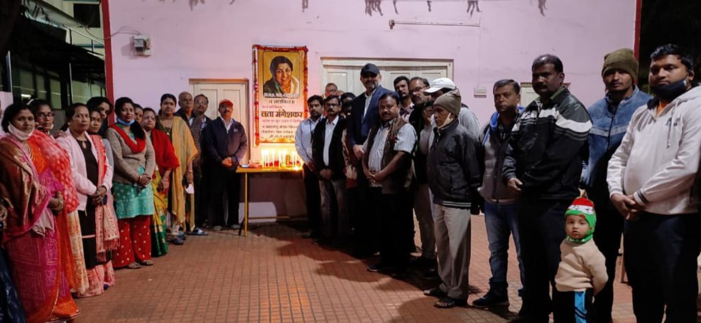 किरन्दुल- स्वर साम्रागी भारत रत्न लता मंगेशकर जी का 06 फरवरी को मुम्बई में उनकी मृत्यु हो गई।जिसके बाद संगीत प्रेमी एवं भारतवर्ष के तमाम लोग उनको श्रद्धांजलि अर्पित कर रहे है। इसी परिप्रेक्ष्य में सोमवार देर रात किरन्दुल स्थित महाराष्ट्र मंडल में स्थानीय कलाकारों की टोली म्यूजिकल नाइट ग्रुप द्वारा लता जी के तैलचित्र पर पुष्प अर्पित कर उन्हें विनम्र श्रद्धांजलि दी गई।इस अवसर पर कलाकारों द्वारा लता दीदी की याद में उनके गीत भी गायें गए। इस अवसर पर मधुकर सीताप राव,सतीश नकाते, नोमेश्वर राव, गुरदीप सिंह,पी किरण, अर्चना बघेल,रीना साहू, एसकेएमएस अध्यक्ष के साजी, सचिव राजेश संधू , वेलवसन्तन, एम सिद्धिबाबु मौजूद थे।